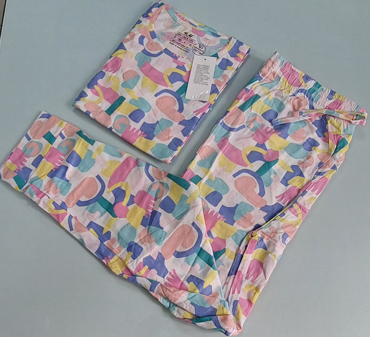 ست تیشرت و شلوار زنانه نخ پنبه اچ اند ام قواره دار اصلی بنگلادشی