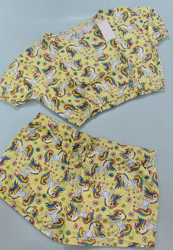ست کراپ و شورتک زنانه نخ پنبه اچ اند ام قواره دار بنگلادشی