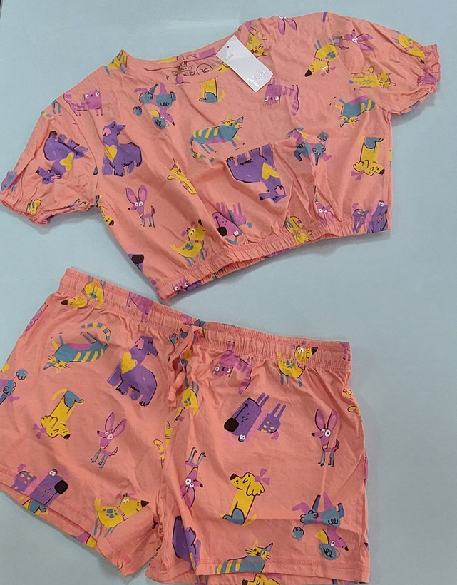 ست کراپ و شورتک زنانه نخ پنبه اچ اند ام قواره دار بنگلادشی