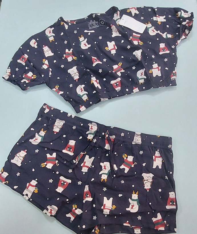 ست کراپ و شورتک زنانه نخ پنبه اچ اند ام قواره دار بنگلادشی
