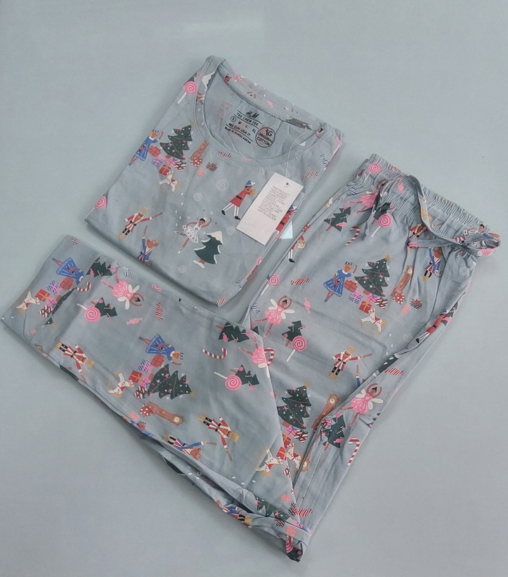ست تیشرت و شلوار زنانه نخ پنبه اچ اند ام قواره دار اصلی بنگلادشی