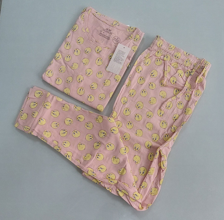 ست تیشرت و شلوار زنانه نخ پنبه اچ اند ام قواره دار اصلی بنگلادشی